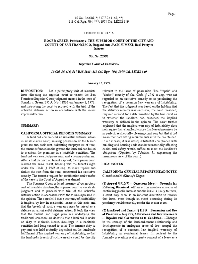 Green v Superior Court of San Francisco 10 Cal 3d 616 PDF