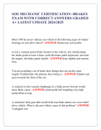 SOS MECHANIC CERTIFICATION BRAKES EXAM WITH CORRECT ANSWERS GRADED A