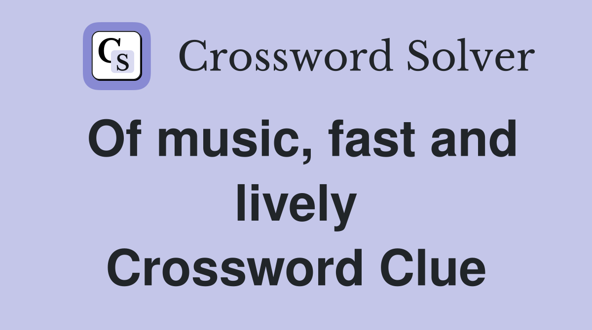 Of music fast and lively Crossword Clue Answers Crossword Solver