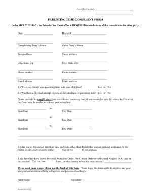 Parenting Time Complaint Form Cojacksonmius Fill and Sign Printable