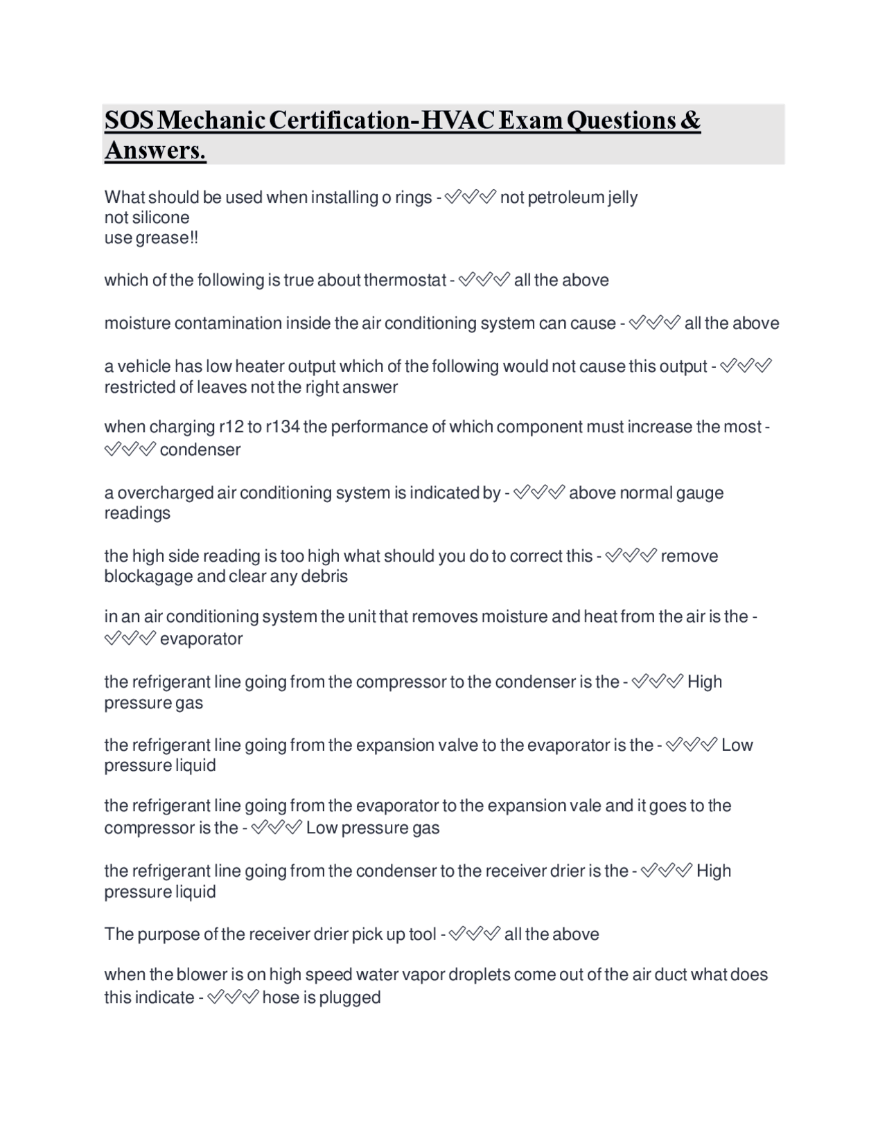 SOS Mechanic Certification HVAC Exam Questions Answers Exams