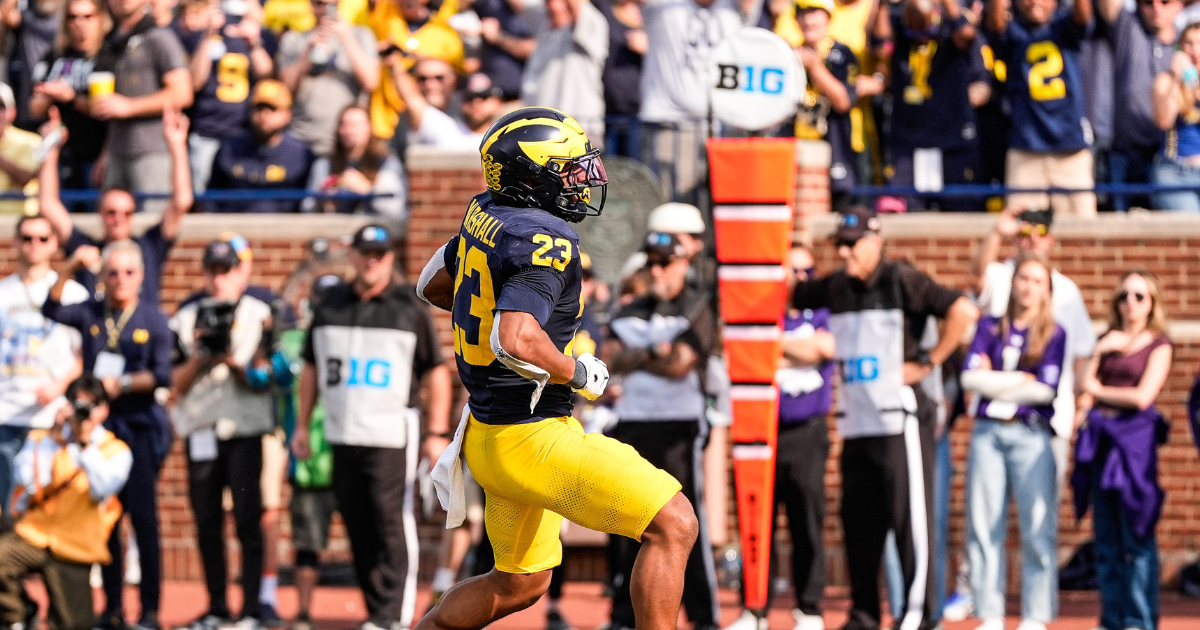 Michigan #39 s Jordan Marshall pushes piles Bryce Underwood #39 s cleanest game