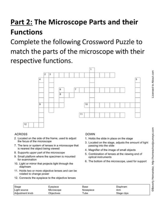 Microscope Parts Crossword Puzzle Answers Microscope Crossword Puzzle