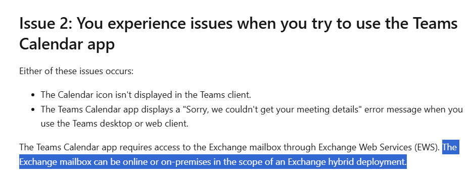Teams Calendar Not Working with On Prem Exchange 2019 After Recent