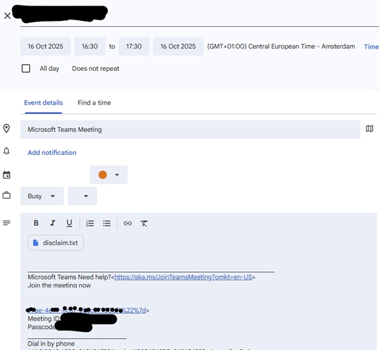 Outlook calendar which is a Gmail calender doesn #39 t show Teams dial in