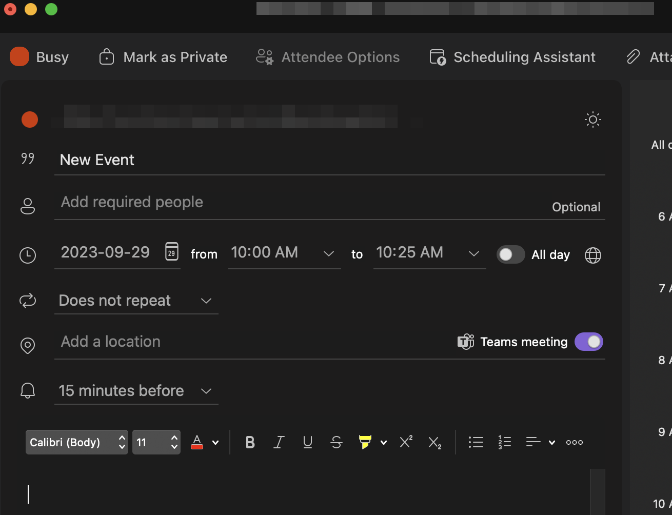 Missing quot Teams Meeting quot toggle in Outlook for macOS calender for one