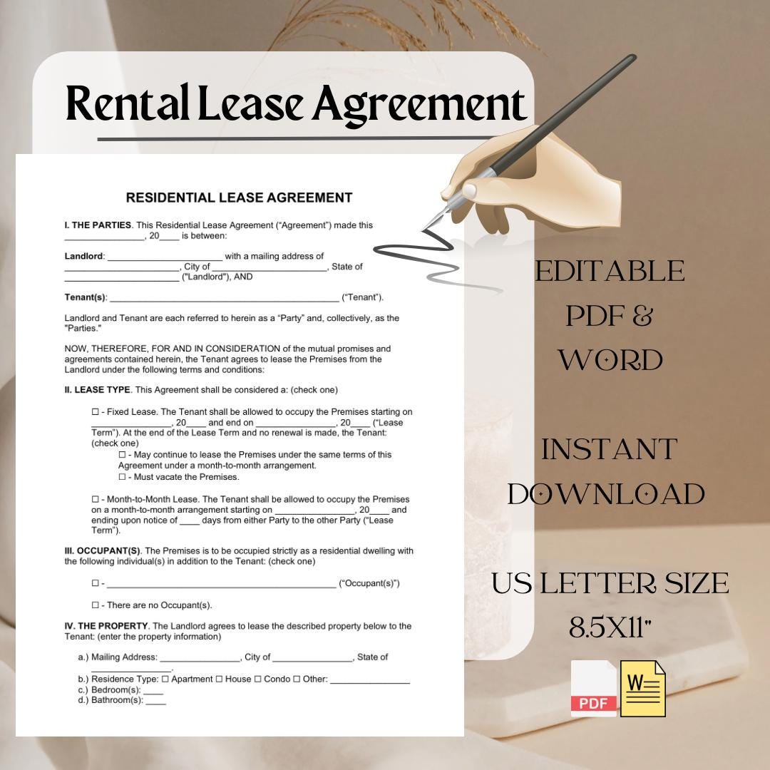 Residential Lease Agreement Template Etsy