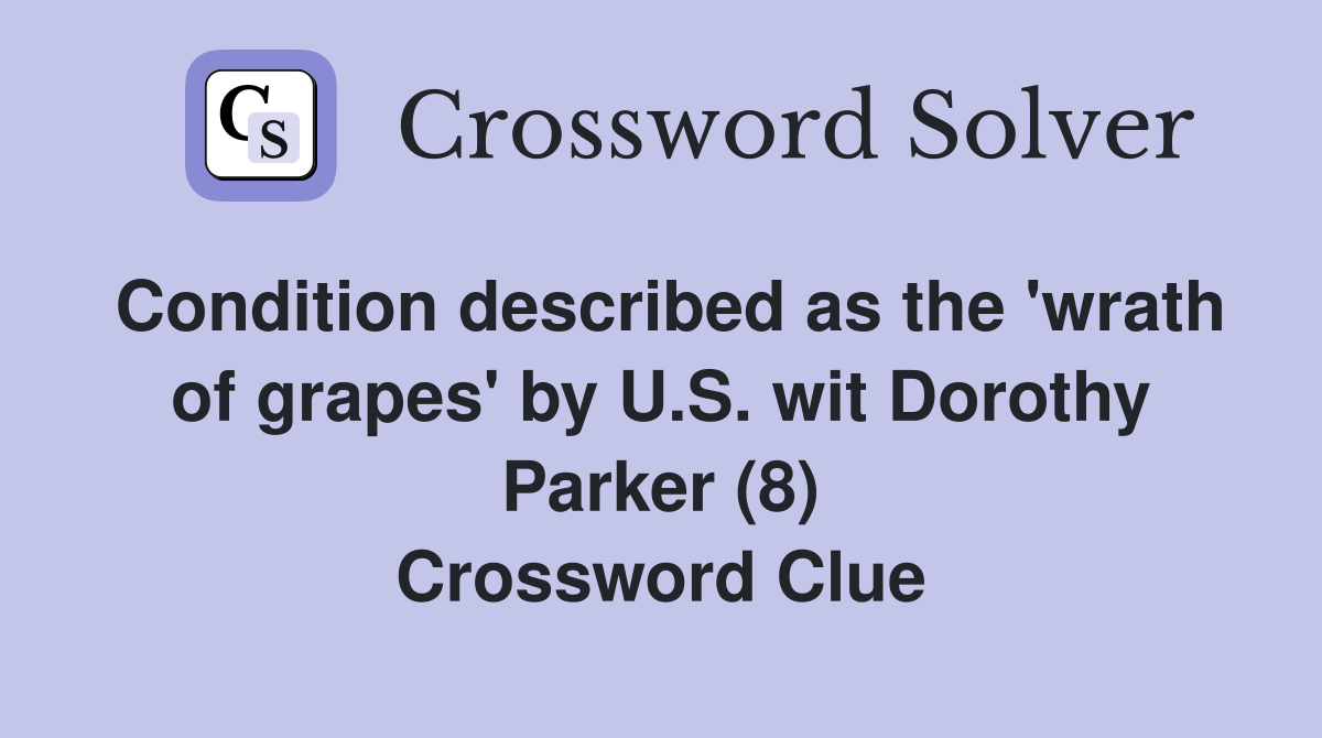 Condition described as the #39 wrath of grapes #39 by U S wit Dorothy Parker