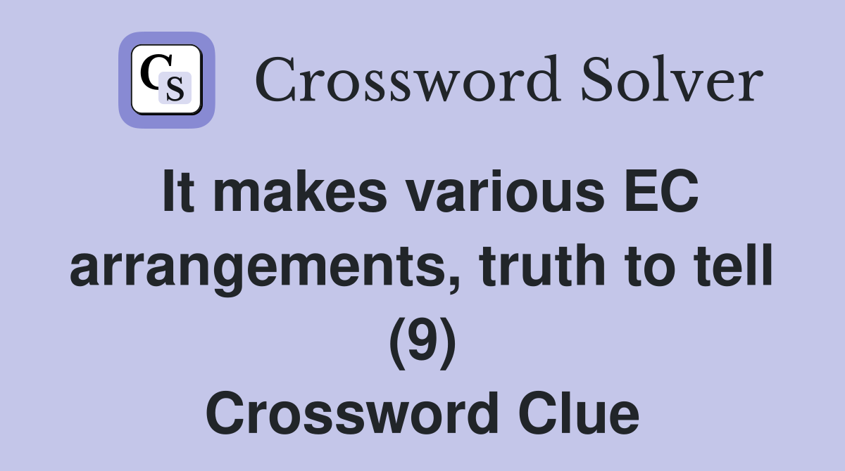 It makes various EC arrangements truth to tell (9) Crossword Clue