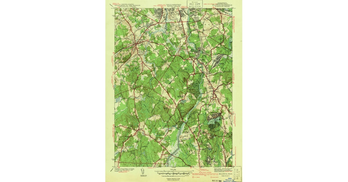 1941 Map of Billerica Middlesex County MA High Res Pastmaps