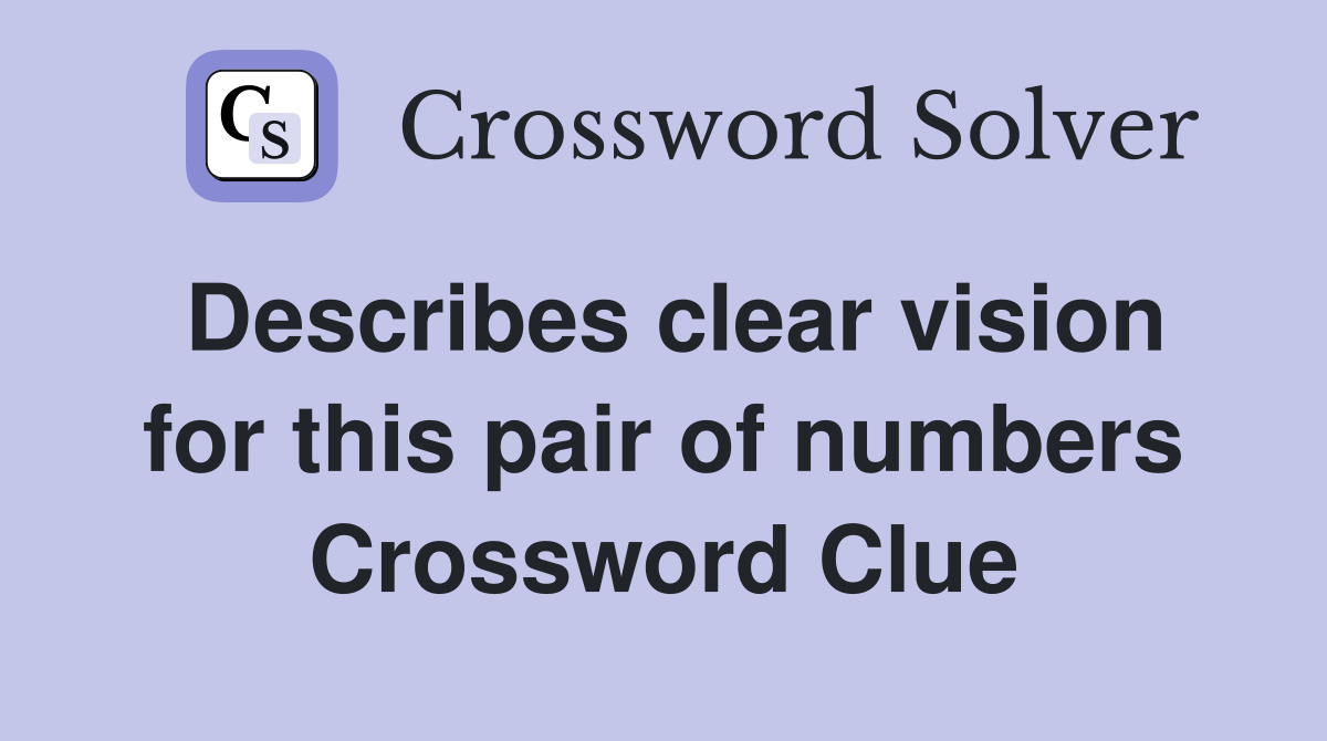Describes clear vision for this pair of numbers Crossword Clue