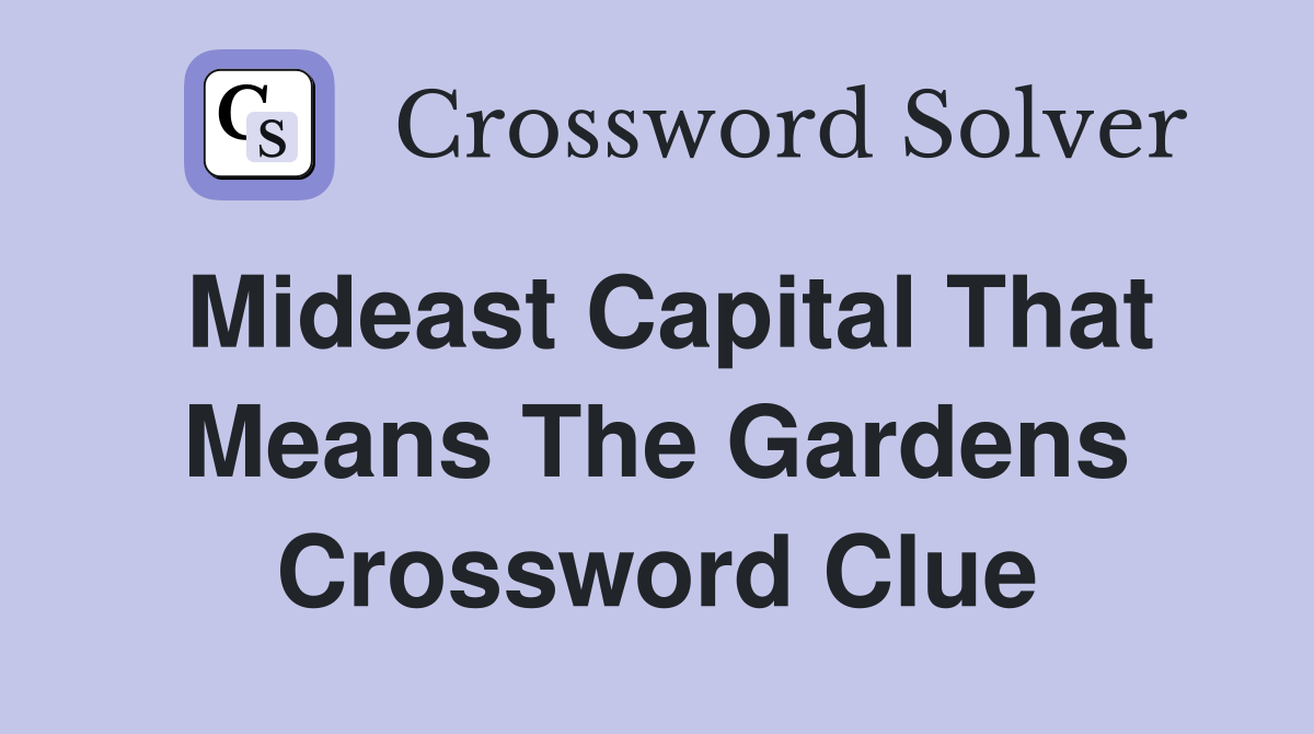 Mideast capital that means quot the gardens quot Crossword Clue Answers