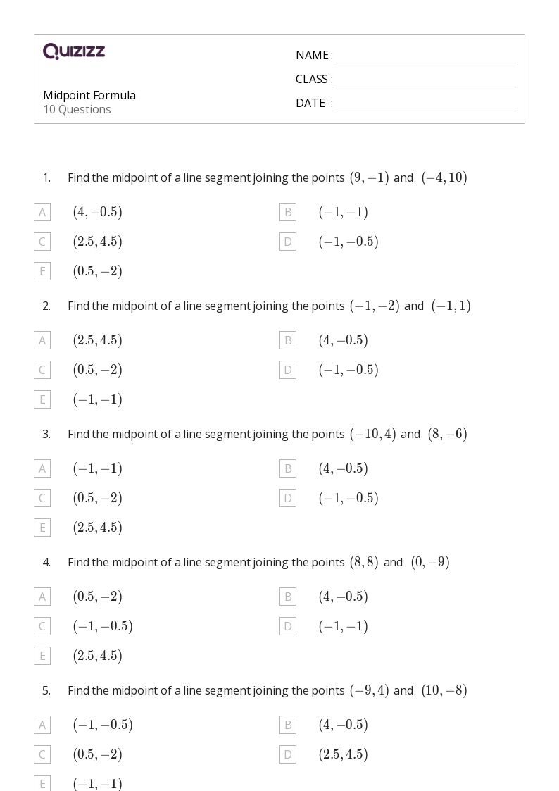 50  midpoint formula worksheets for 10th Class on Quizizz Free