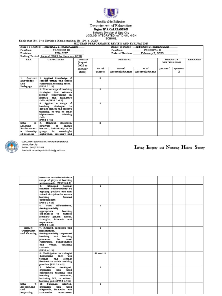Mid Year Performance Review And Evaluation Deped 2020 Sample Design Talk
