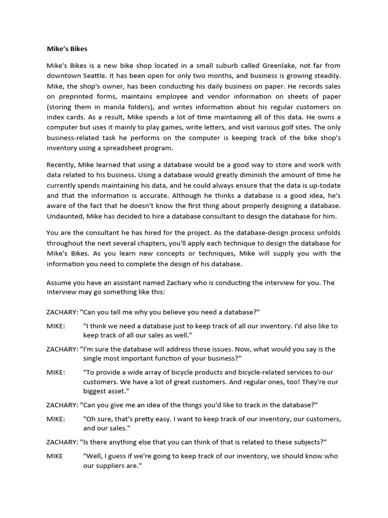 Mikes Bikes Case Study PDF Databases Inventory