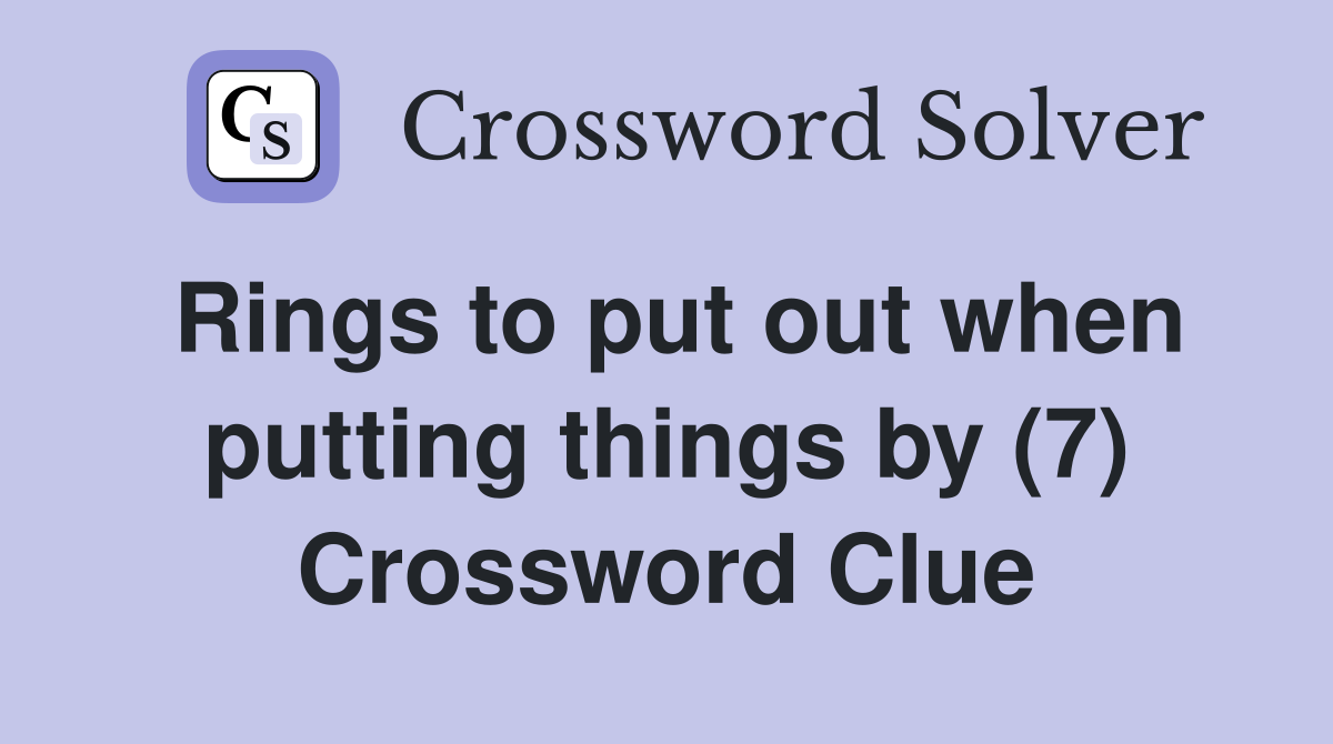 Rings to put out when putting things by (7) Crossword Clue Answers