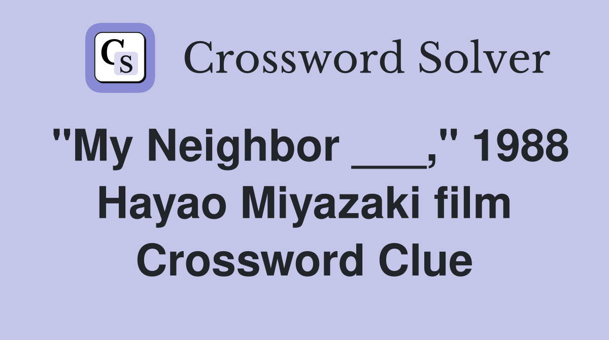 quot My Neighbor quot 1988 Hayao Miyazaki film Crossword Clue Answers