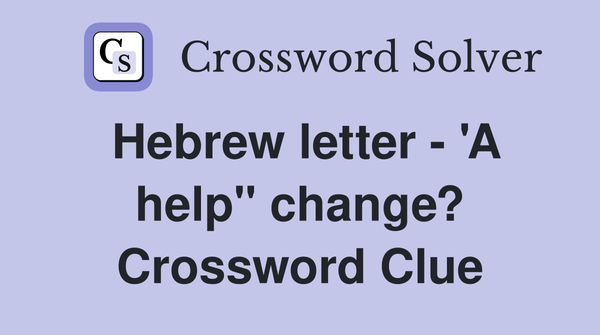 Hebrew letter #39 A help quot change? Crossword Clue Answers Crossword
