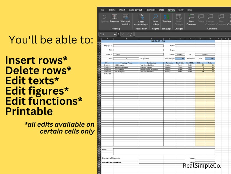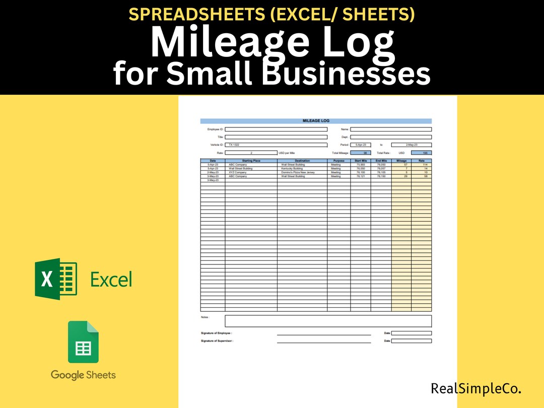Excel Mileage Template Etsy