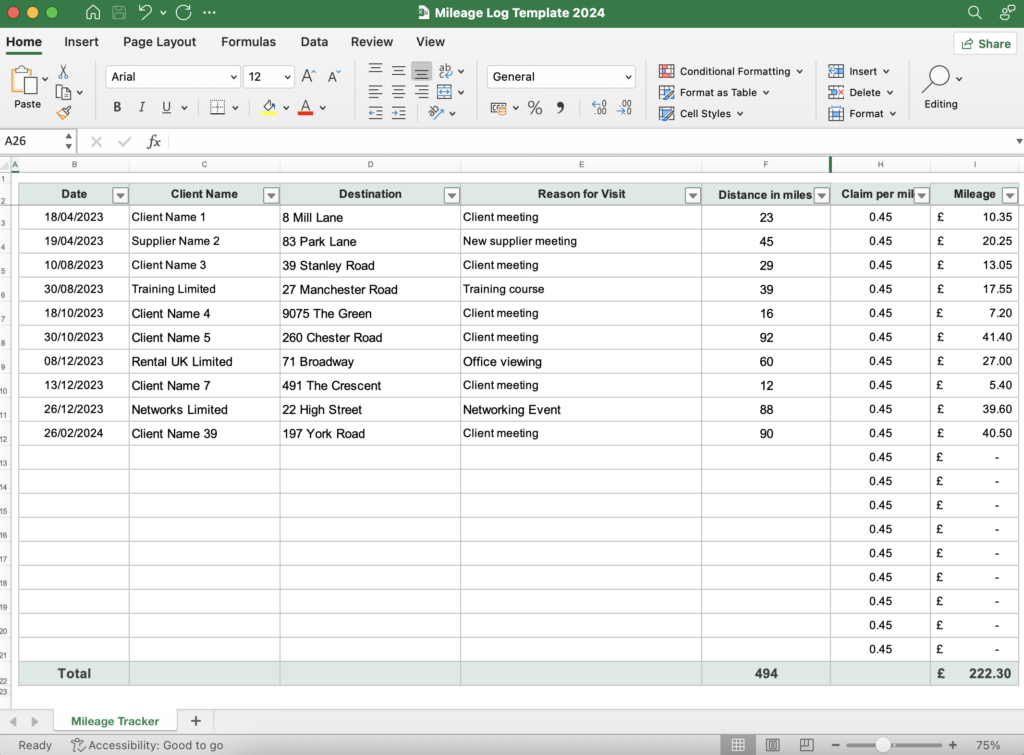 Free Business Mileage Log Template (UK)