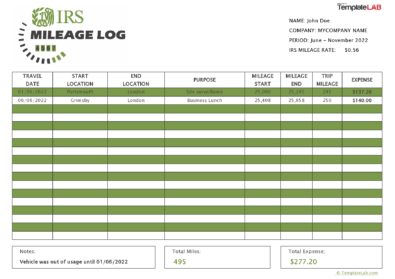 Irs Mileage Log Template Excel