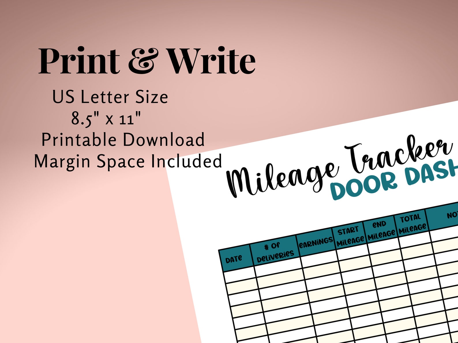 Door Dash Mileage Tracker Printable Log Book Planner Taxes Gig Apps