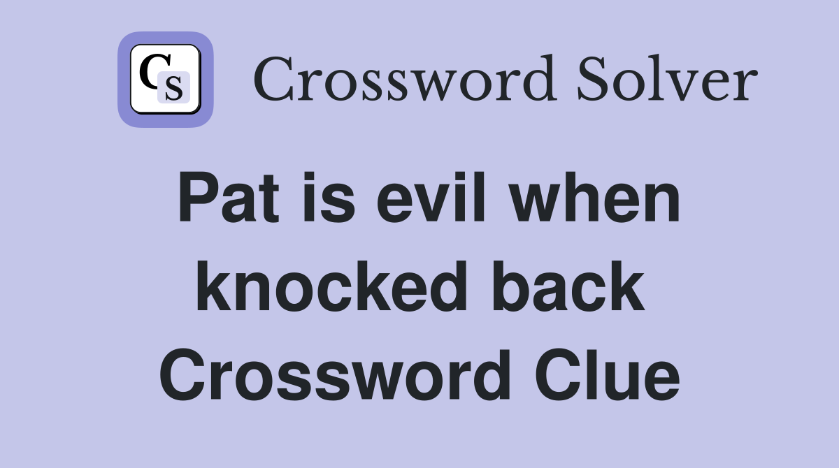 Pat is evil when knocked back Crossword Clue Answers Crossword Solver