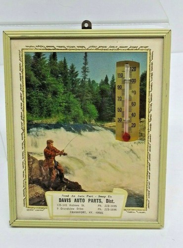 VTG ADVERTISING FISHING THERMOMETER PLAQUE 1973 CALENDAR DAVIS AUTO