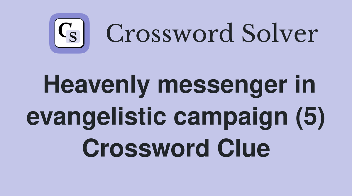 Heavenly messenger in evangelistic campaign (5) Crossword Clue