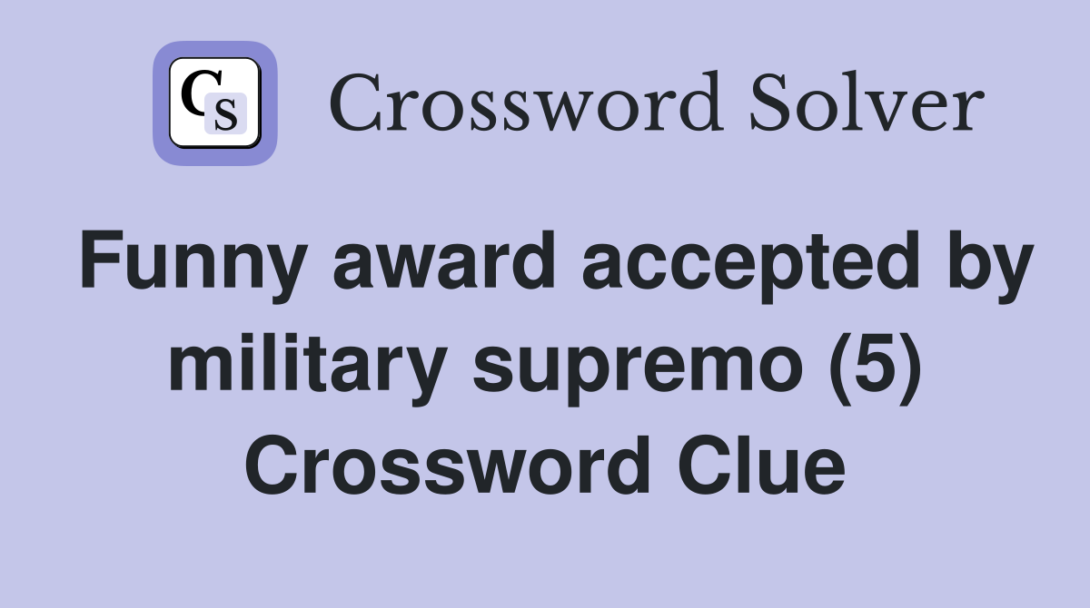 Funny award accepted by military supremo (5) Crossword Clue Answers