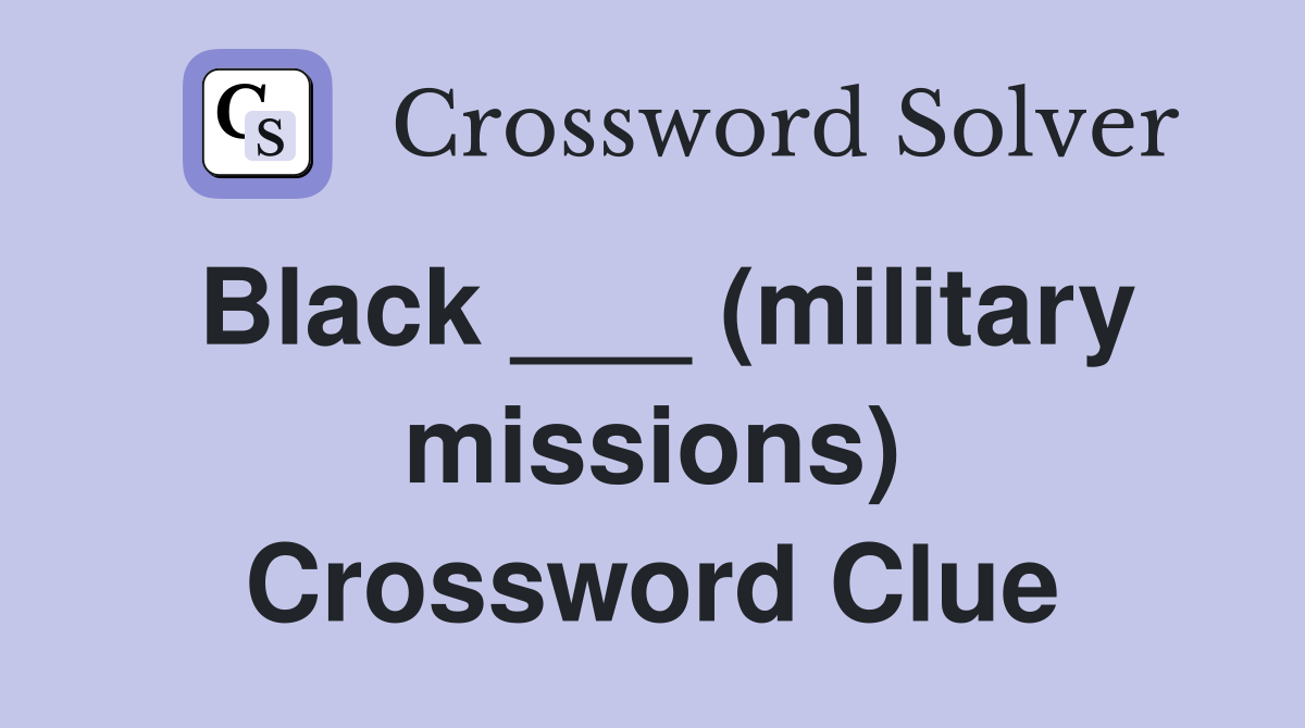Black (military missions) Crossword Clue Answers Crossword Solver