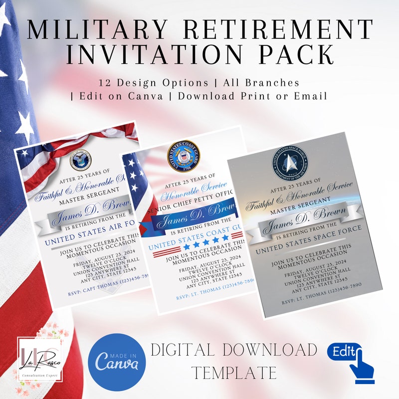 Editable Military Retirement Ceremony Canva Template Set Customizable