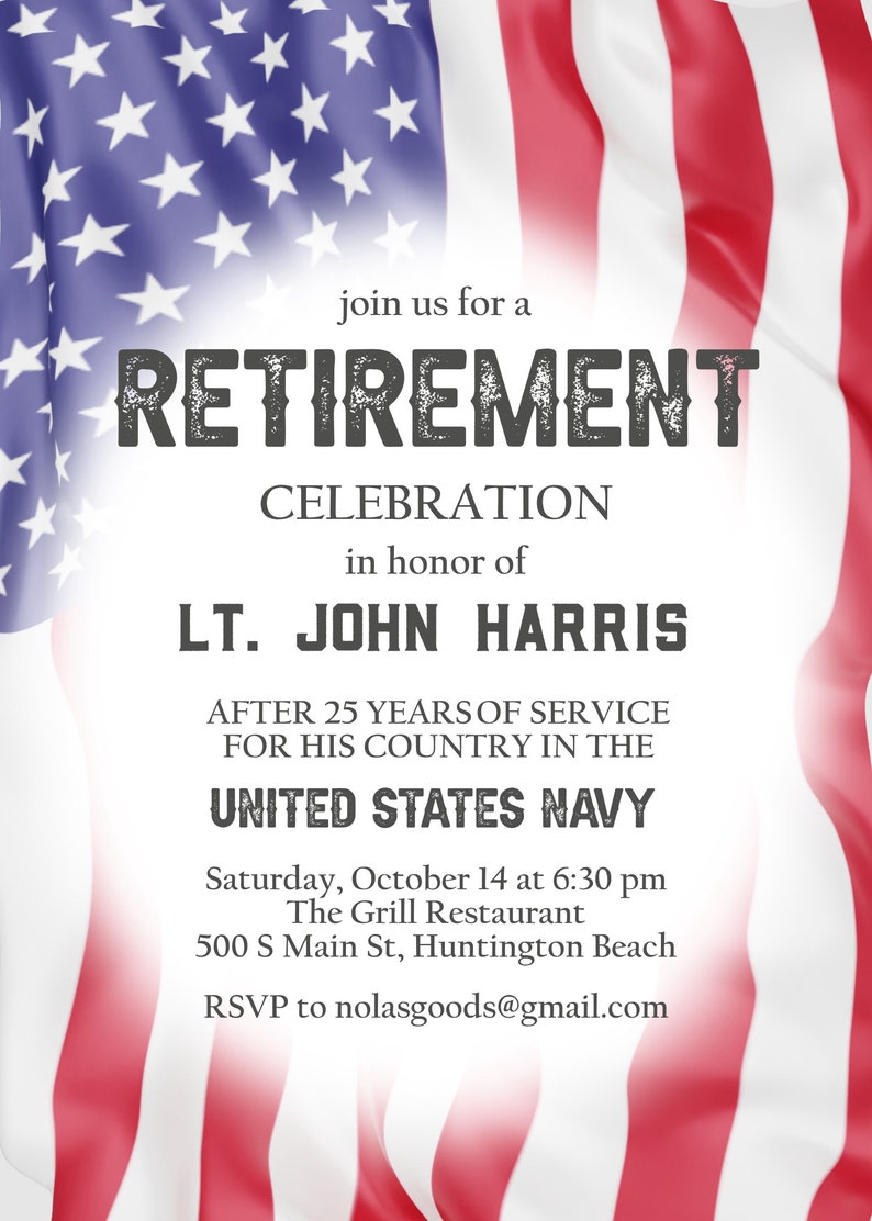 Military Retirement Ceremony Invitation Template 5x7 quot American Flag