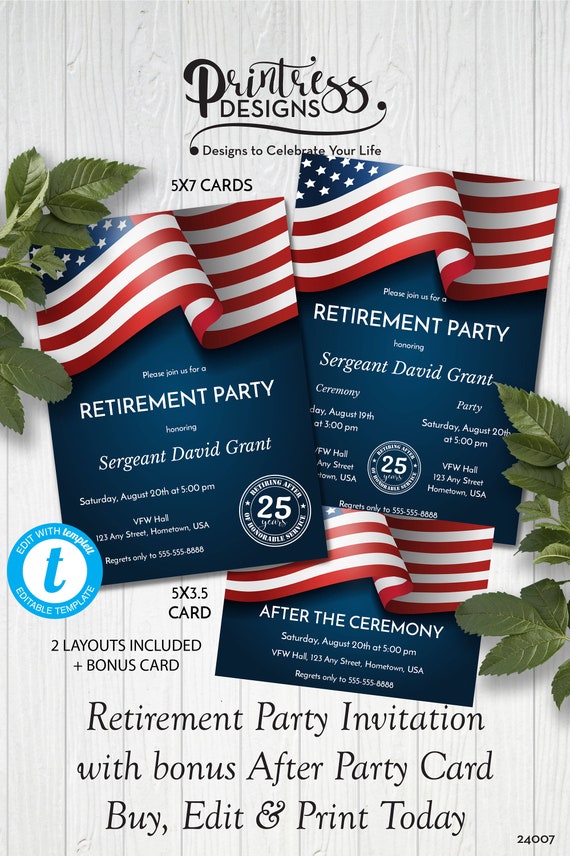 Military Retirement Party Invitation Template Do It Yourself Printables