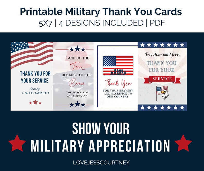 INSTANT DOWNLOAD Printable Veteran Military Patriotic Thank You Cards