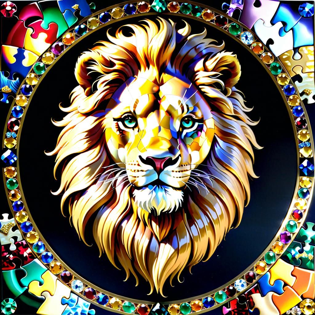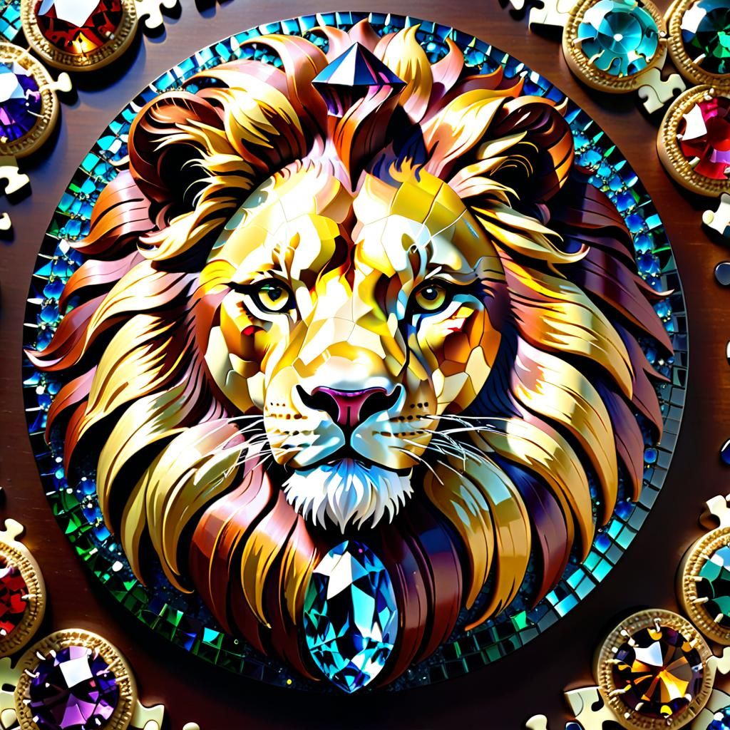 Sparkling Lion Gemstone Puzzle / Mosaic AI Generated Artwork