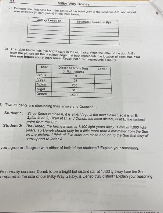 Solved Milky Way Scales 2) Estimate the distances from the Chegg com