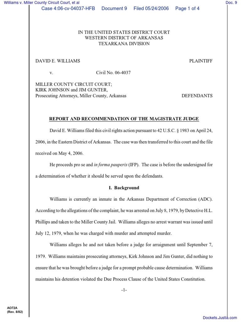 Williams v Miller County Circuit Court Et Al Document No 9 PDF