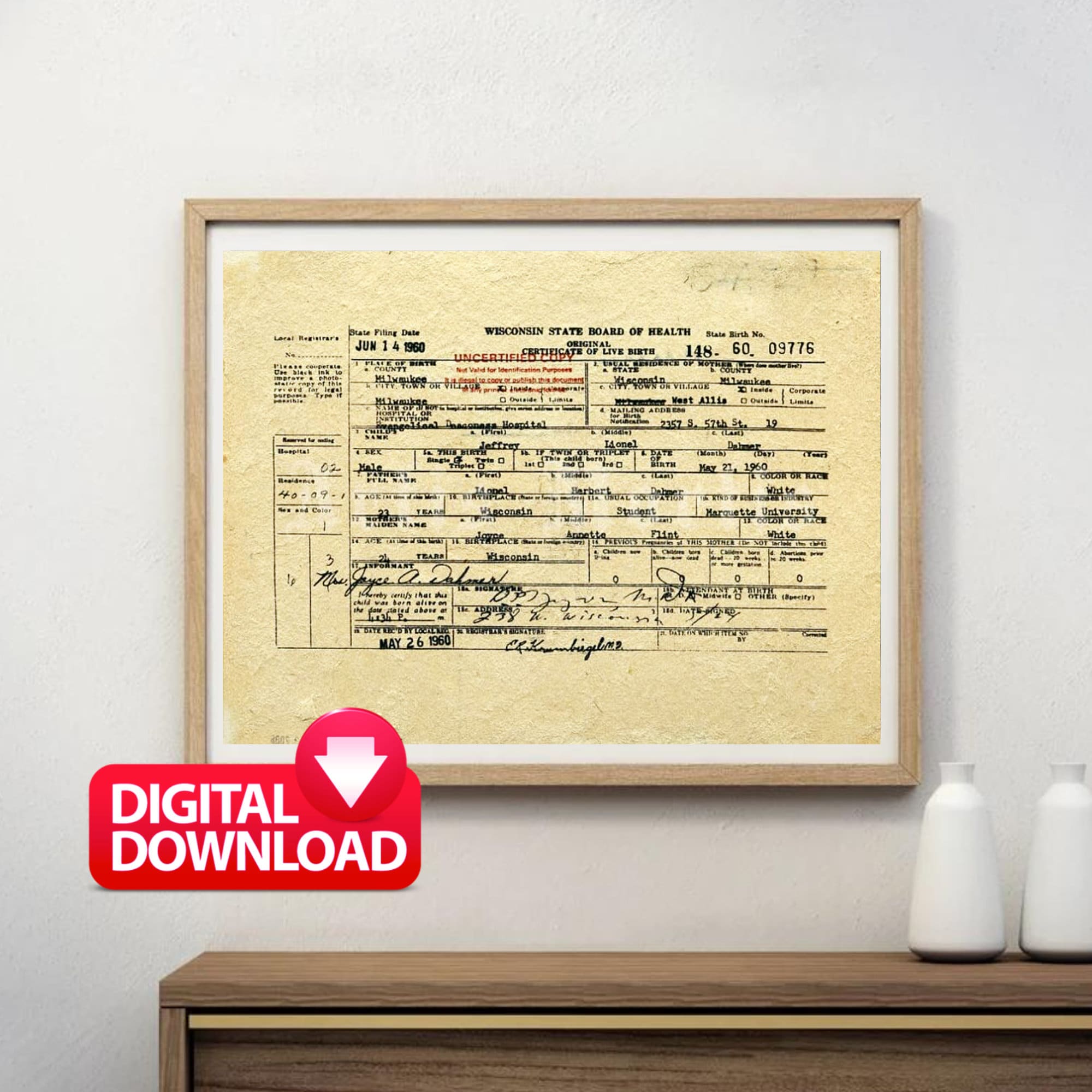 JEFFREY DAHMER Birth Certificate American Serial Killer Art Print