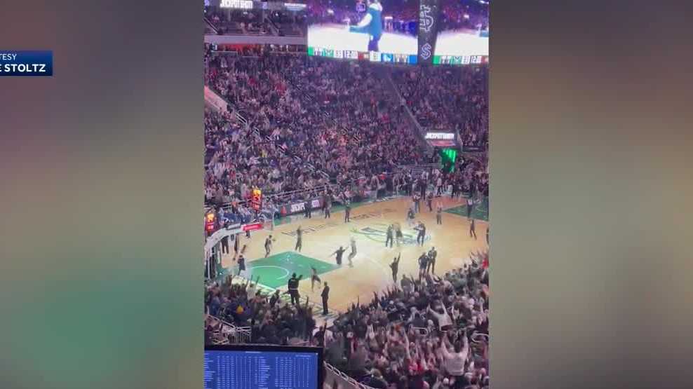 Bucks fan hits halfcourt shot to win $5 000 celebrates with Eurostep