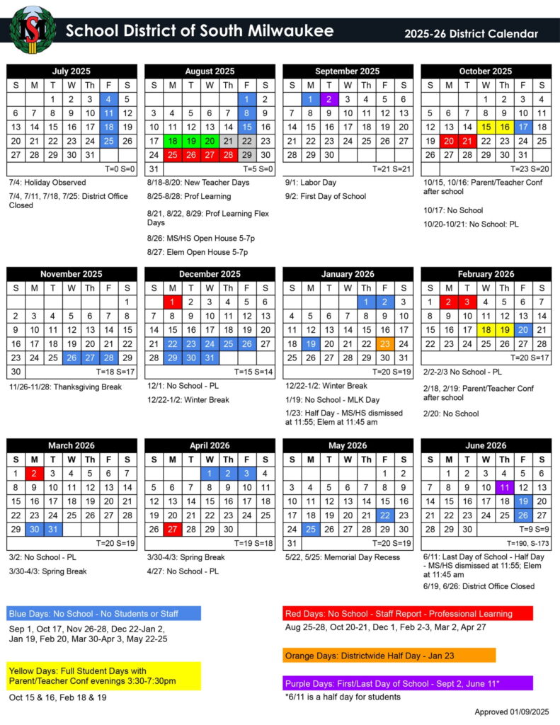 School District of South Milwaukee Calendar 25 26 Revised pdf EduCounty