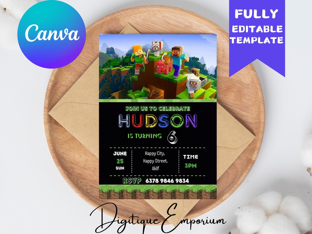 Minecraft Birthday Party Invitation Template: Printable Canva Design