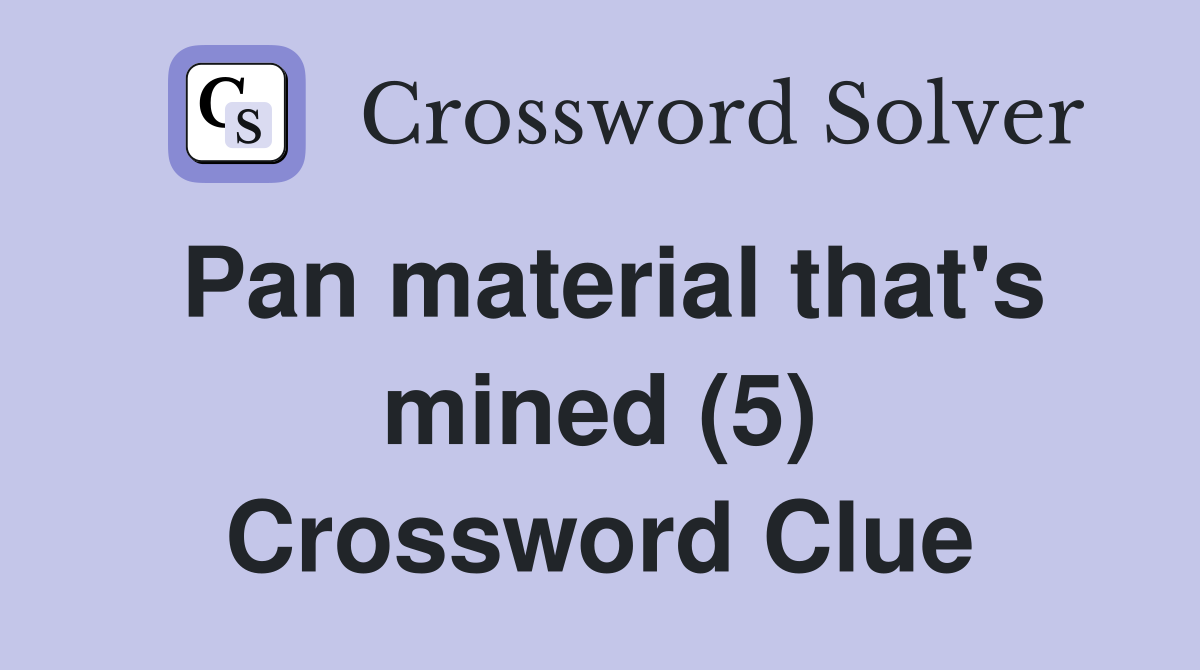 Pan material that s mined (5) Crossword Clue Answers Crossword Solver