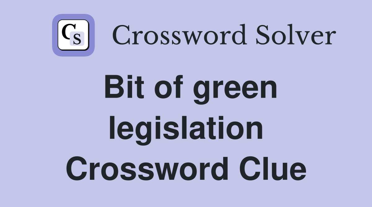 Bit of green legislation Crossword Clue Answers Crossword Solver