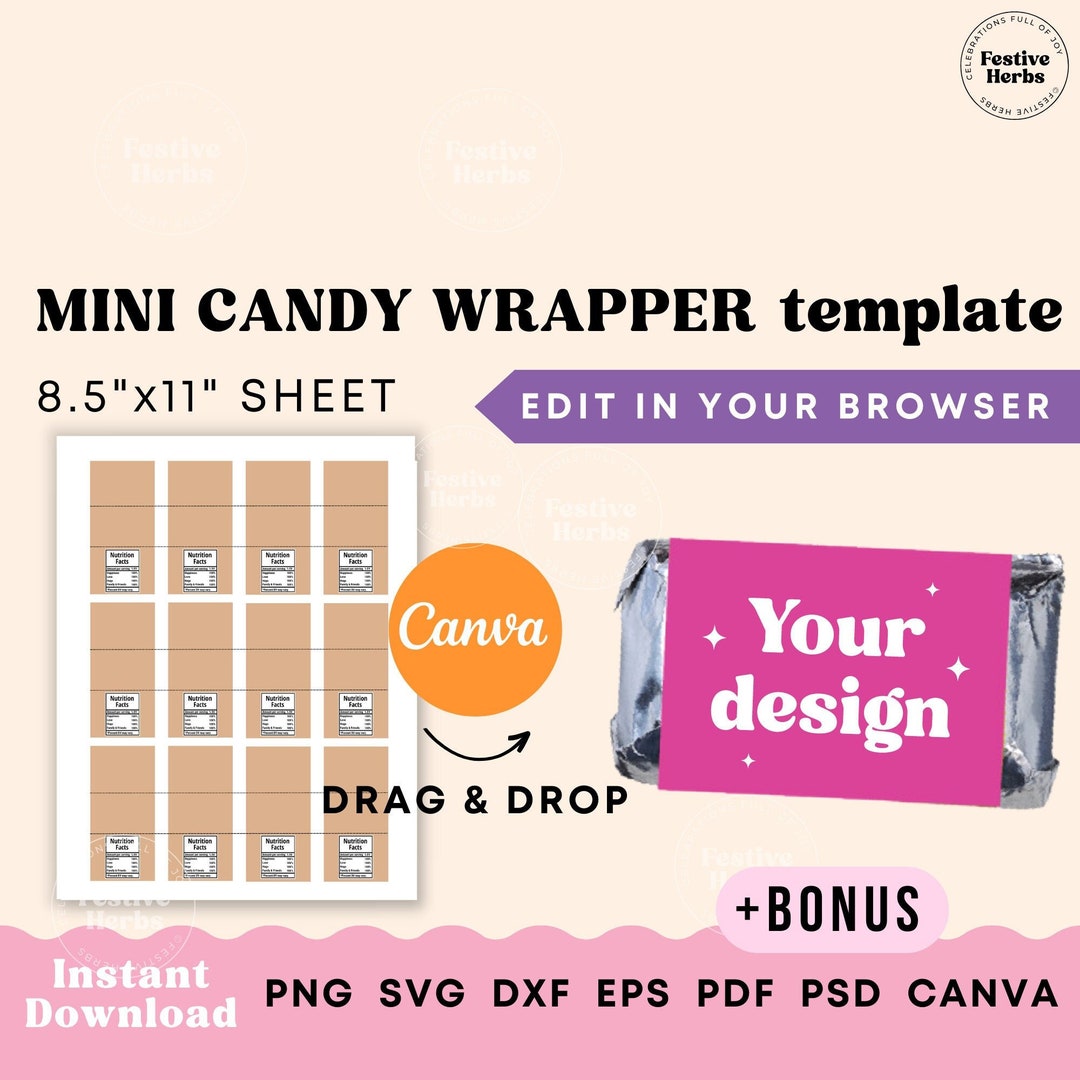 Mini Chocolate Wrapper Canva Editable Template Mini Candy Wrapper