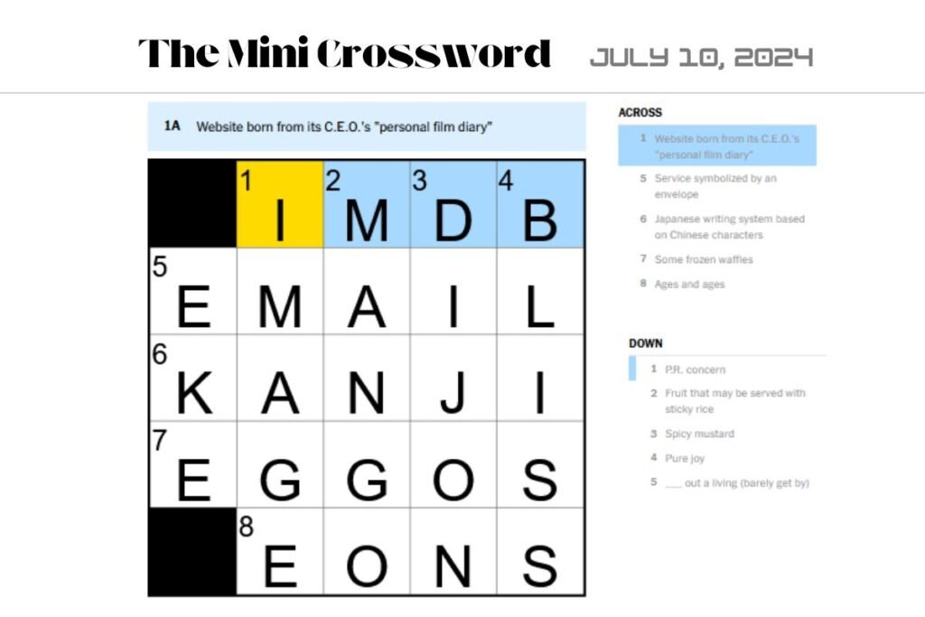 NYT Mini Crossword July 28 2024 Answers (7/28/24) Try Hard Guides