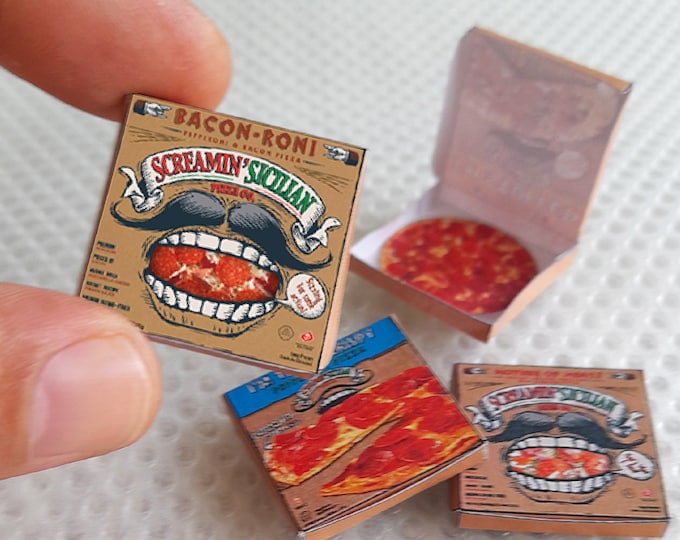 Miniature Pizza Box Printable Kit 1/12 and 1:6 Scale Dollhouse Food