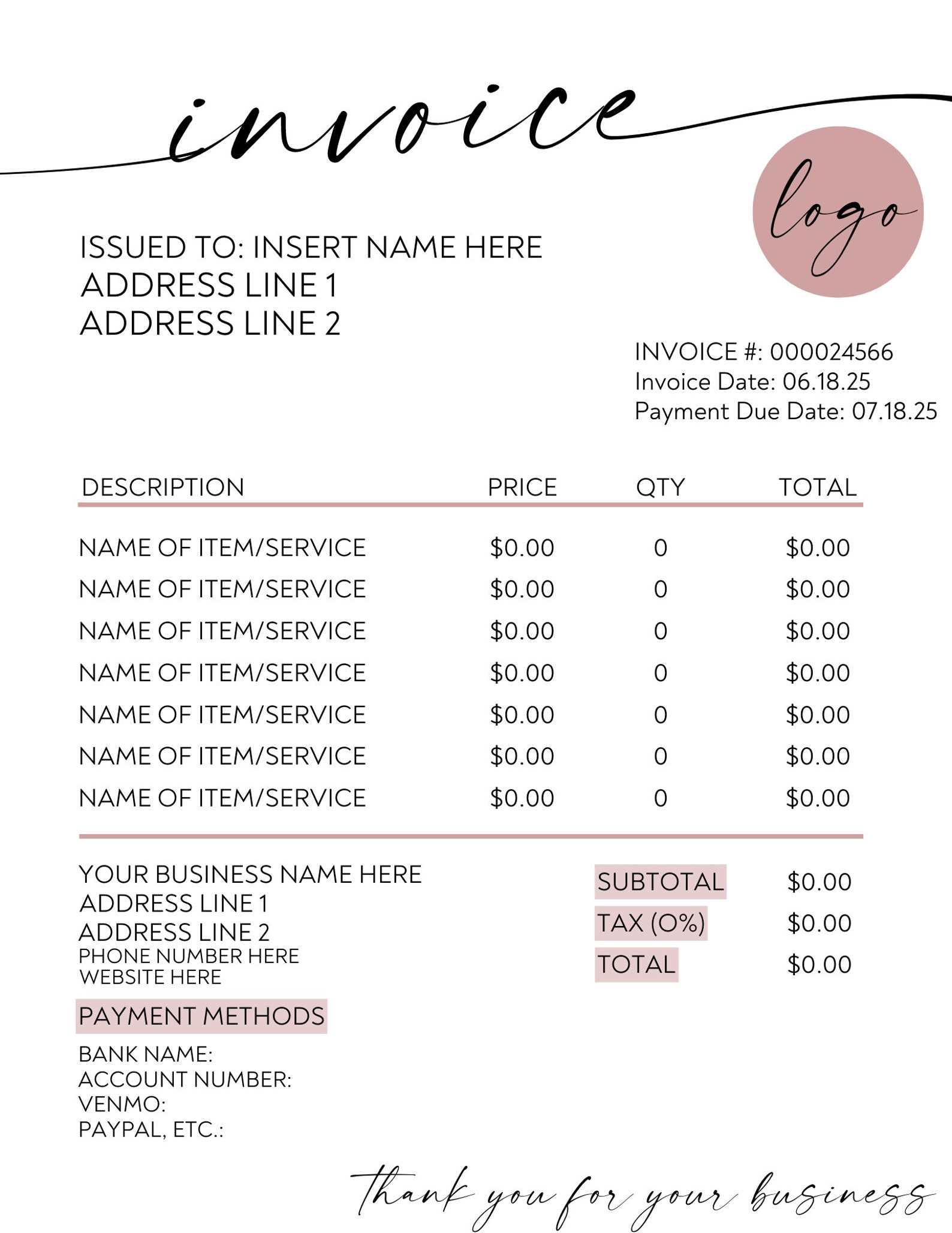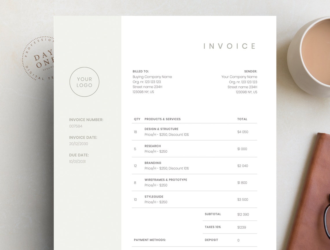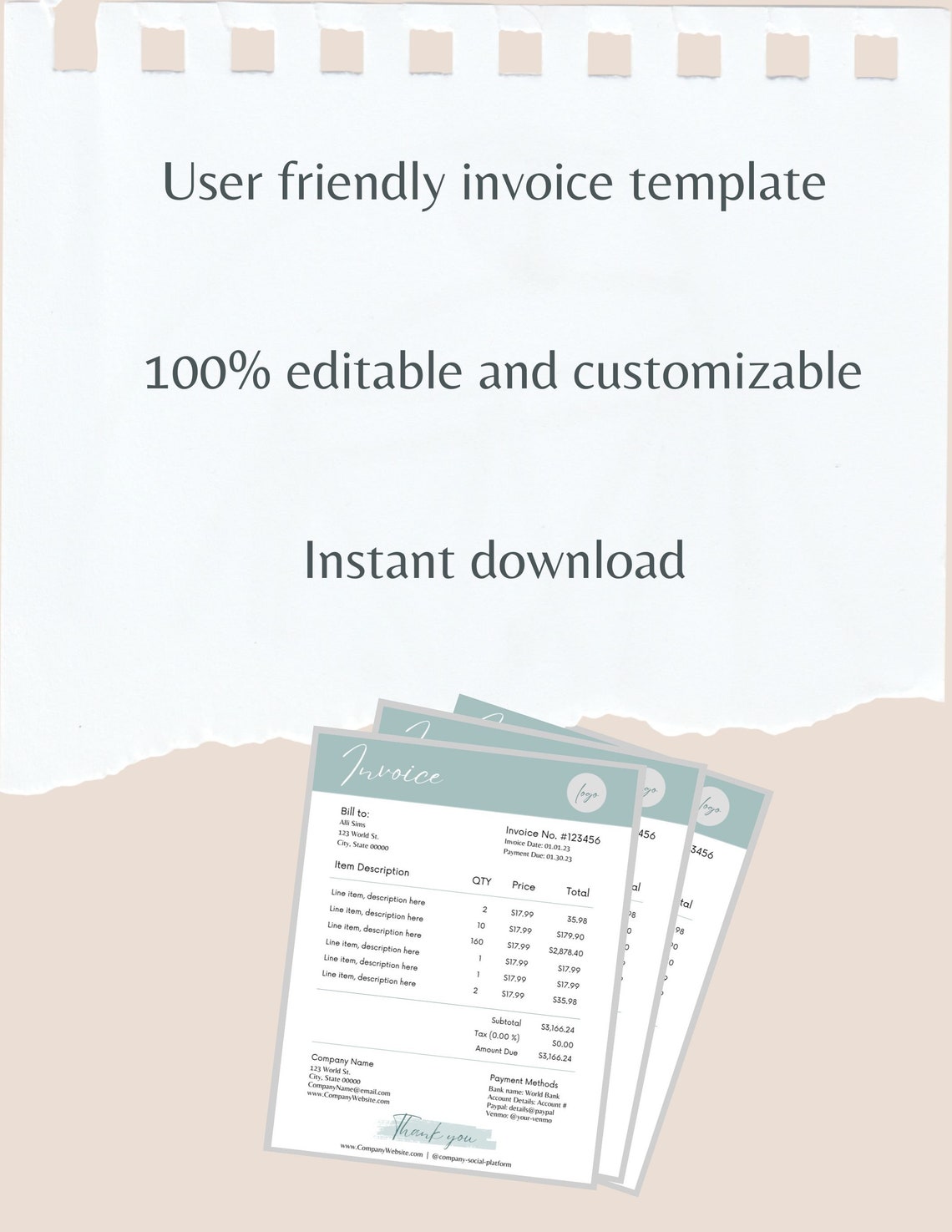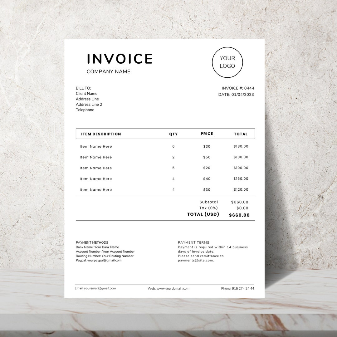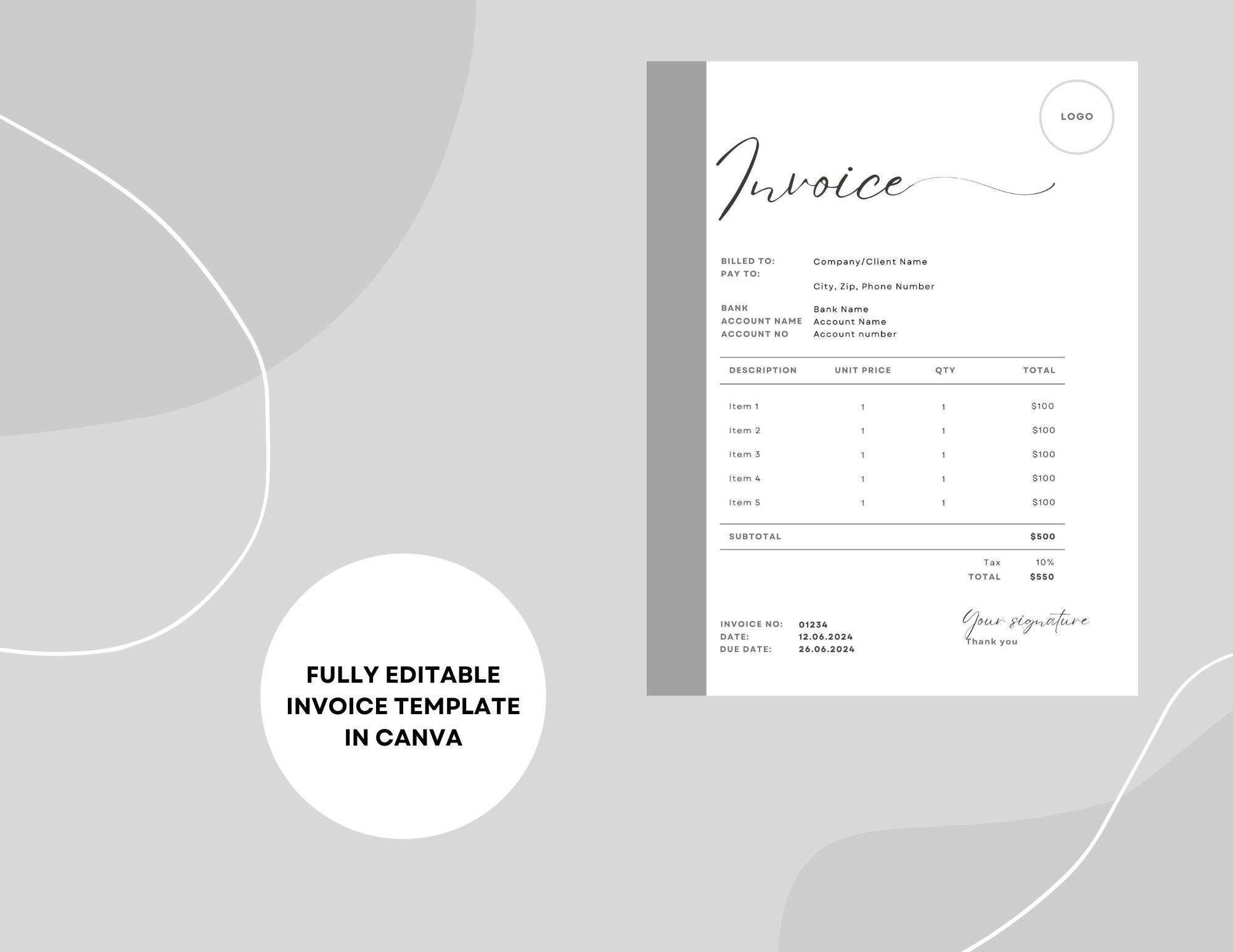Modern Minimalist Invoice Template Fully Customizable Instant