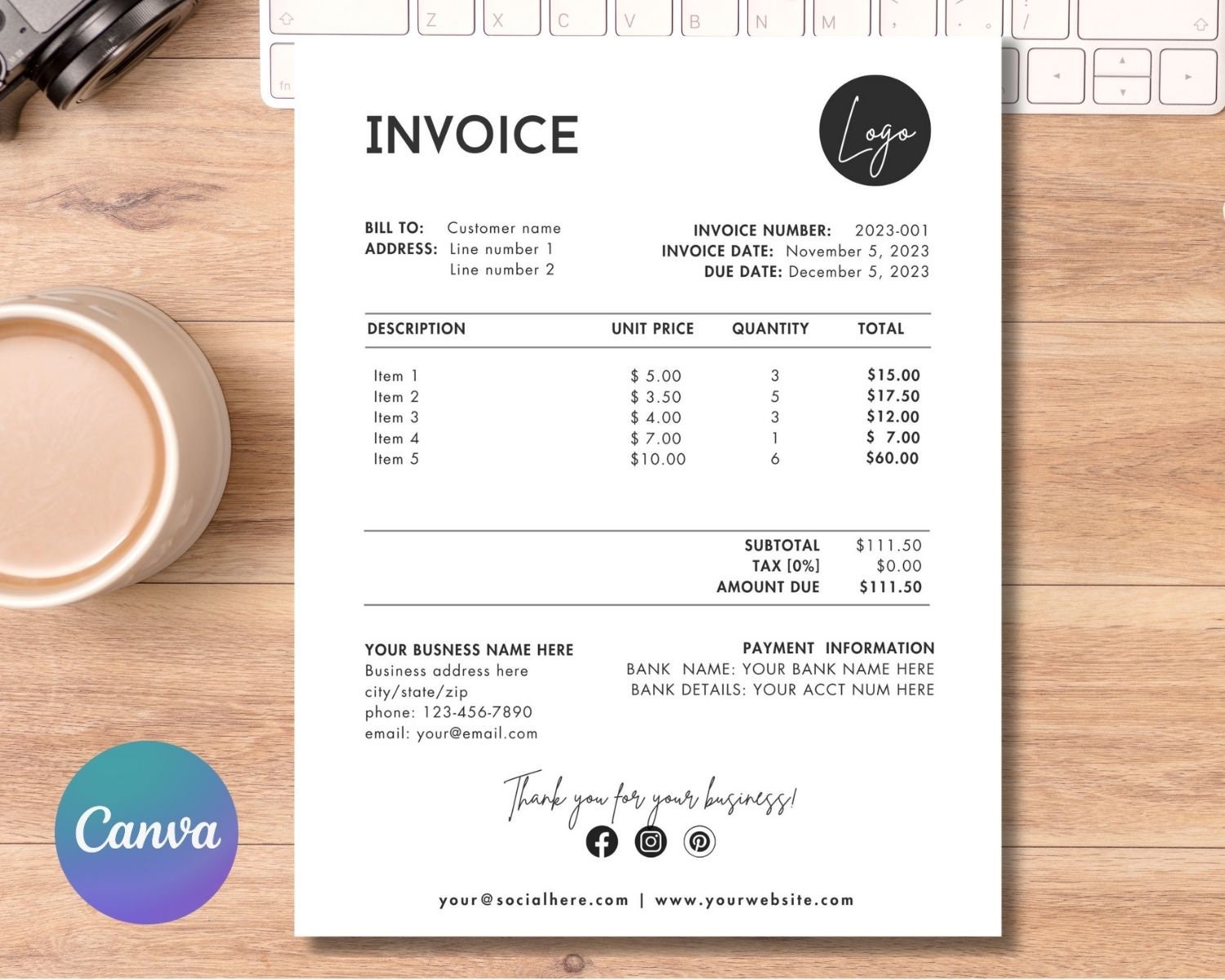 Minimalist Invoice Template Printable Invoice Template Etsy