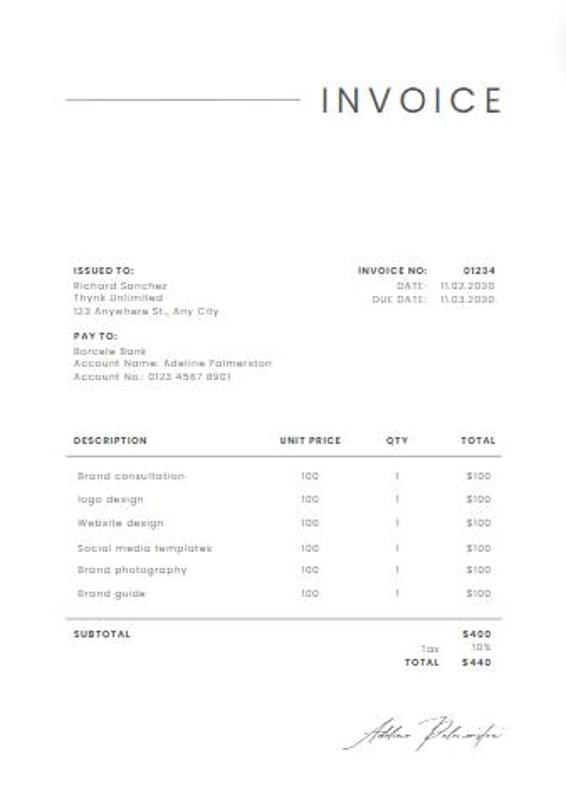Minimalist Invoice Template 1 Oh Snap Boutique